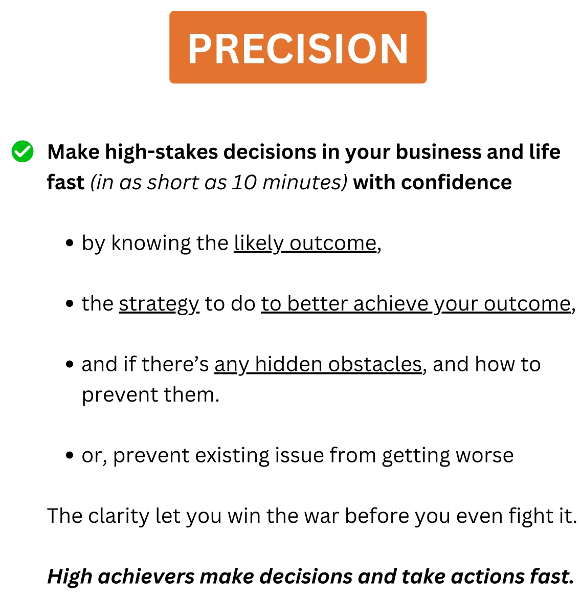✅ Make important decisions in your career, business, or life fast, by knowing the likely outcome,