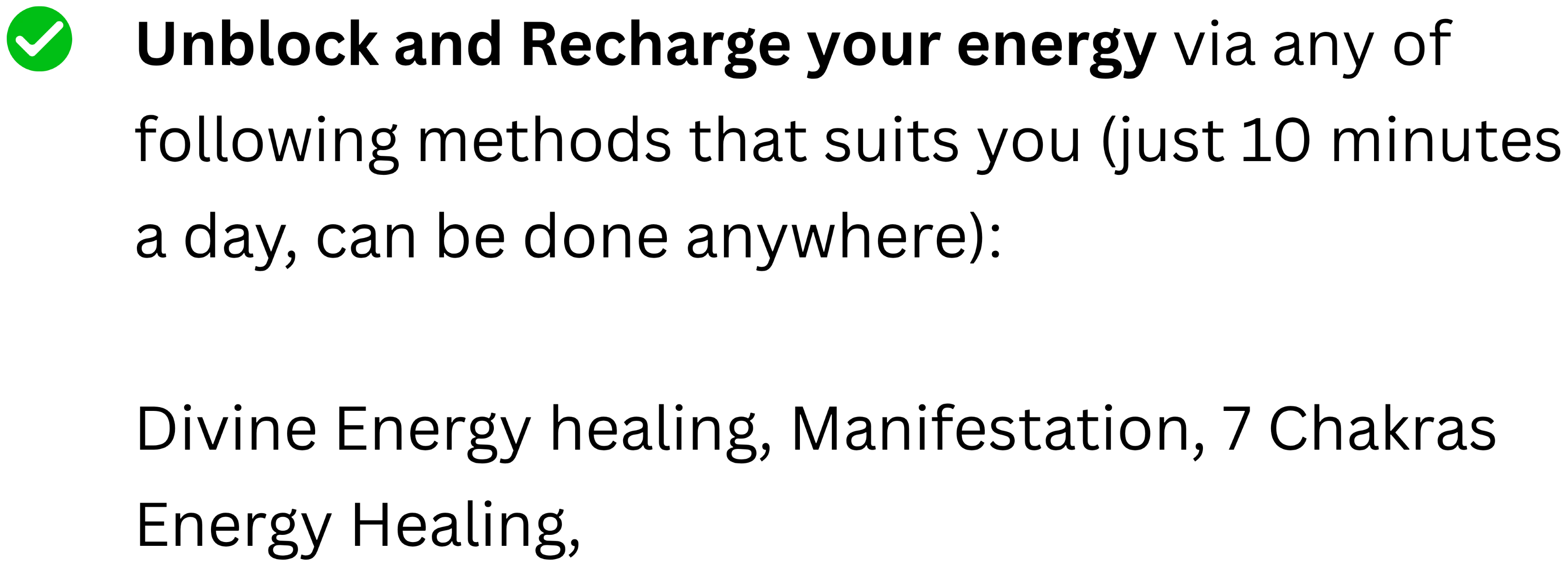 ✅ Feel good, energised, clarity, confident, courageous, powerful within, even if you wake up feeling craps.